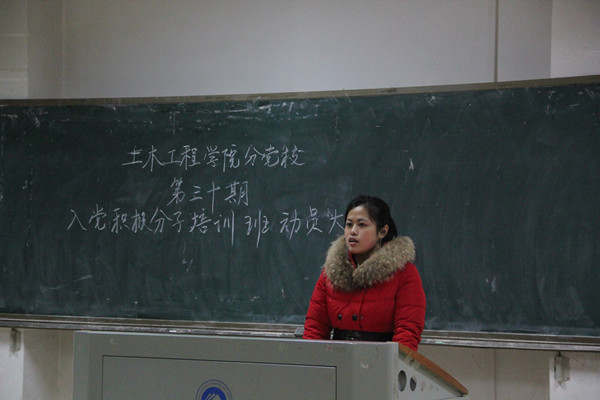 此次动员大会使新一代入党积极分子明确了在培训期间的任务,责任和要求。调动了他们的积极性,为以后培训课程和最后的入党考核奠定了良好的思想基础,坚定了他们从思想上先入党的信念,确立了高标准,高起点,高要求以铸造党的新生代的新目标。