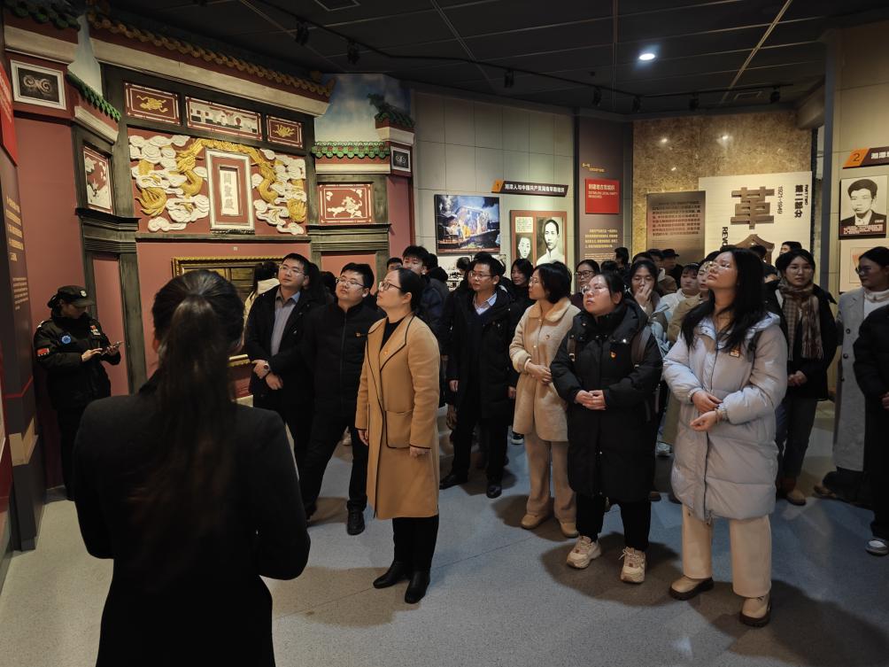 为深入开展革命历史教育和爱国主义教育实践活动,重温湘潭近代百年革命历史,赓续革命精神,践行初心使命,2024年12月24日下午,beat365亚洲版官网开展了以“循迹三馆忆峥嵘,奋楫时代绘蓝图;誓言铮铮承使命,党徽熠熠启芳华”为主题的党建研学暨新发展党员入党宣誓活动。学院党委副书记陈笑、全体辅导员、学生支部书记、学生老党员代表以及2024年新发展学生党员一同前往湘潭市博物馆、党史馆,开启探寻历史、坚定信仰的研学之旅。