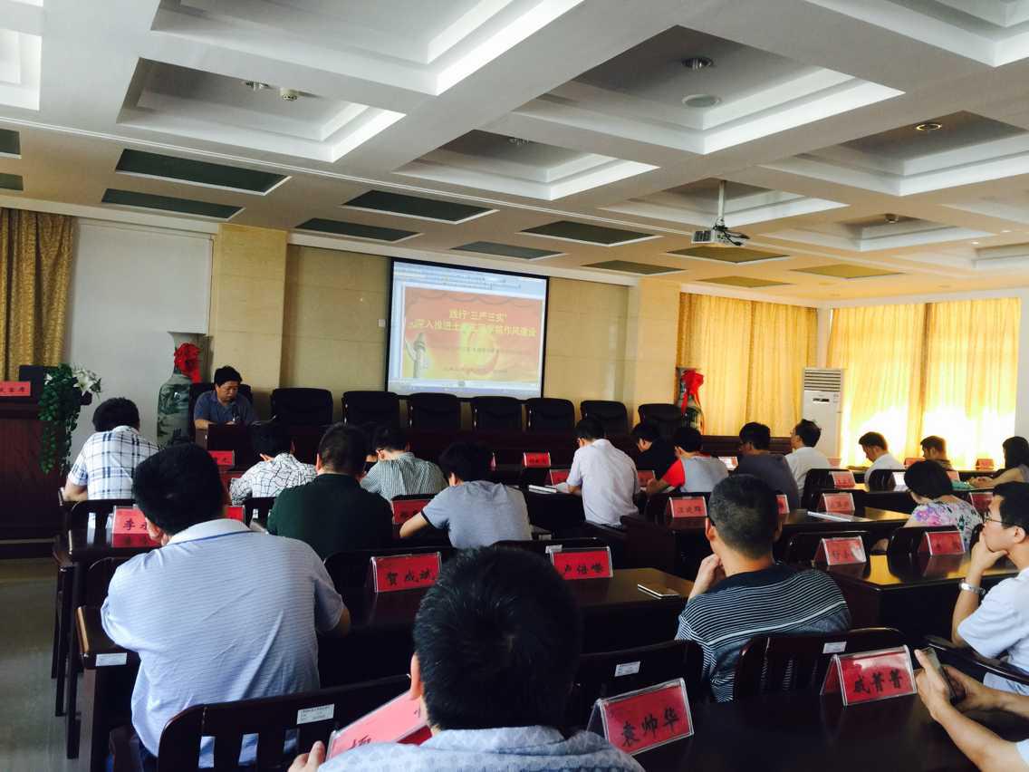 6月16日下午,beat365“三严三实”专题党课暨专题教育部署会在土木楼201会议室举行。全体教职工党员和学生党支部书记参加会议。会议由院长钟新谷主持。