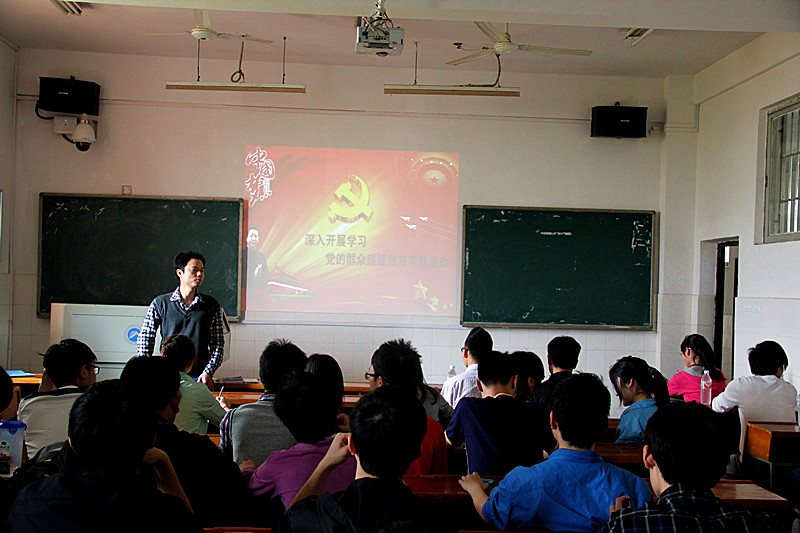 2014年4月4日至10日,土木学院展开了“深入开展学习党的群众路线”的教育实践活动。为了更好地开展此次活动,学院成立了以钟新谷、易贵元、虢利钢、杨荣丰、易雪辉、刘丽芳、任伯帜以及朱建群组成的领导小组,小组成员在活动期间深入学院各班与同学们进行思想交流。