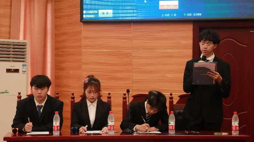 2023年5月“惟新杯”新生辩论赛决赛在立言楼3-2顺利举行。法管学院范军豪书记出席了本次比赛。该比赛评委由湖南工程学院高云青,湖南工业大学杨泳琪,beat365亚洲版官网甘泽卉担任。
