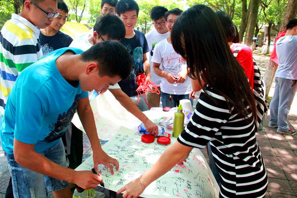 白云当空,艳阳高照,前往美食城的路上人山人海。此次活动以照片宣传,学生联合签名等方式来加强beat365学生诚信教育,提高学生的诚信素质,增强学生的诚信意识。签了名的同学还可以获得可口的小零食,这些别出心裁的方式使在场的同学和老师,及路过的行人积极地参与到其中。场面热闹无比。
